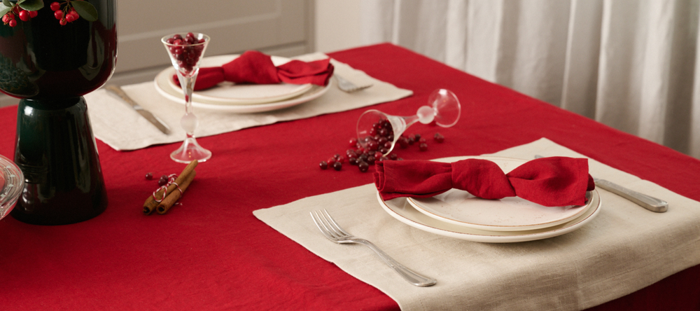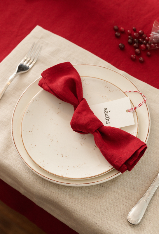 Linen tablecloth in Cranberry