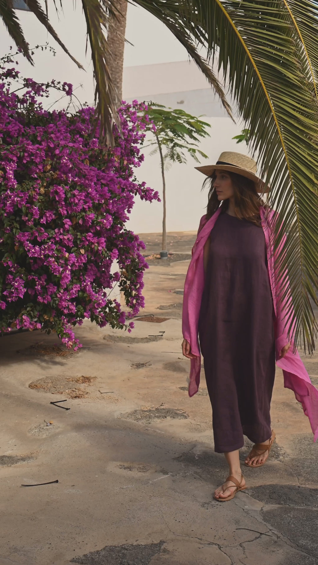 Lightweight Linen Scarf in Fuchsia